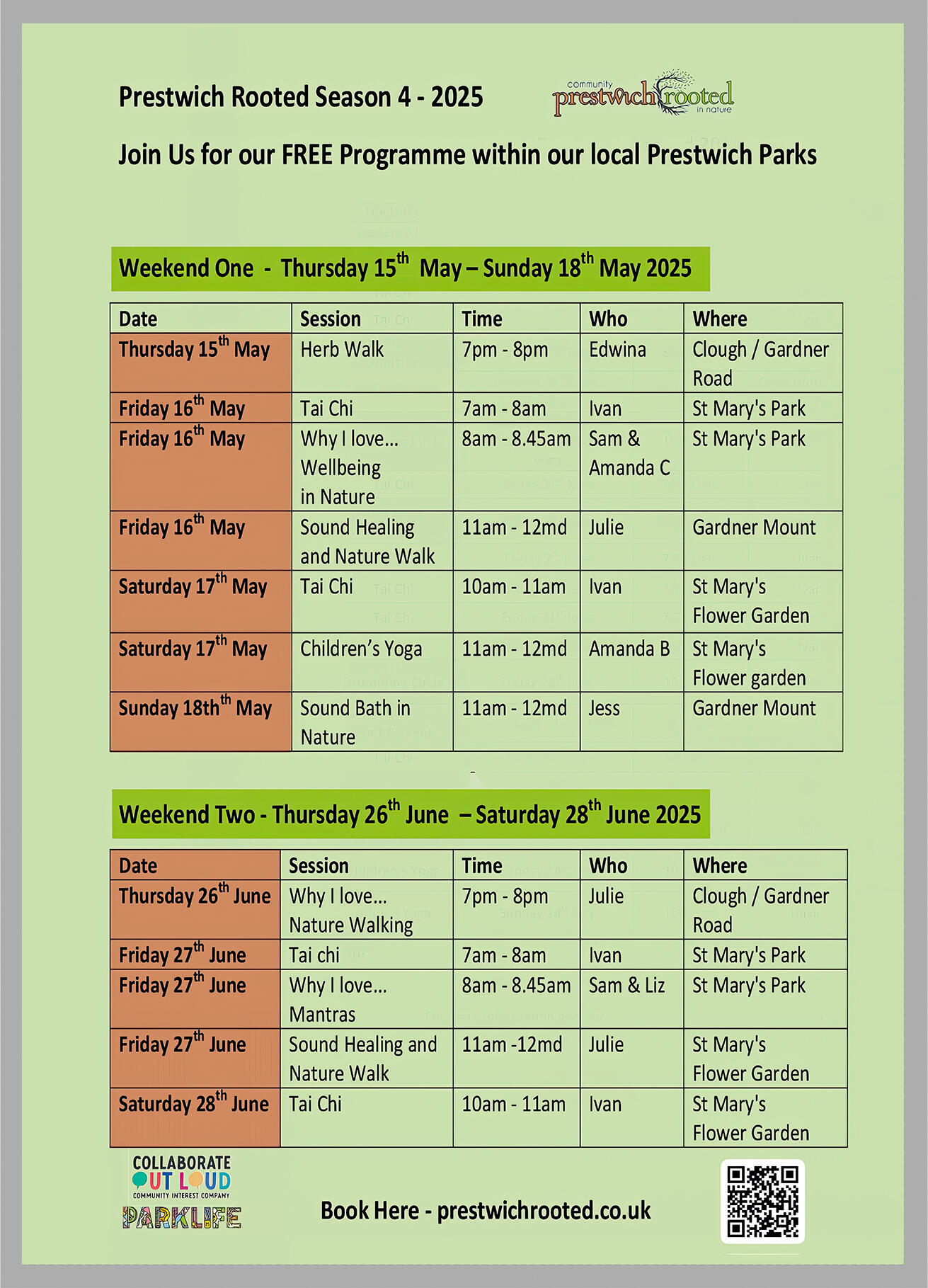 -Please note. Only things advertised under Prestwich Rooted website are events we can take any responsibility for. But we hope you enjoy new networks and a forest of new opportunities because you took part.